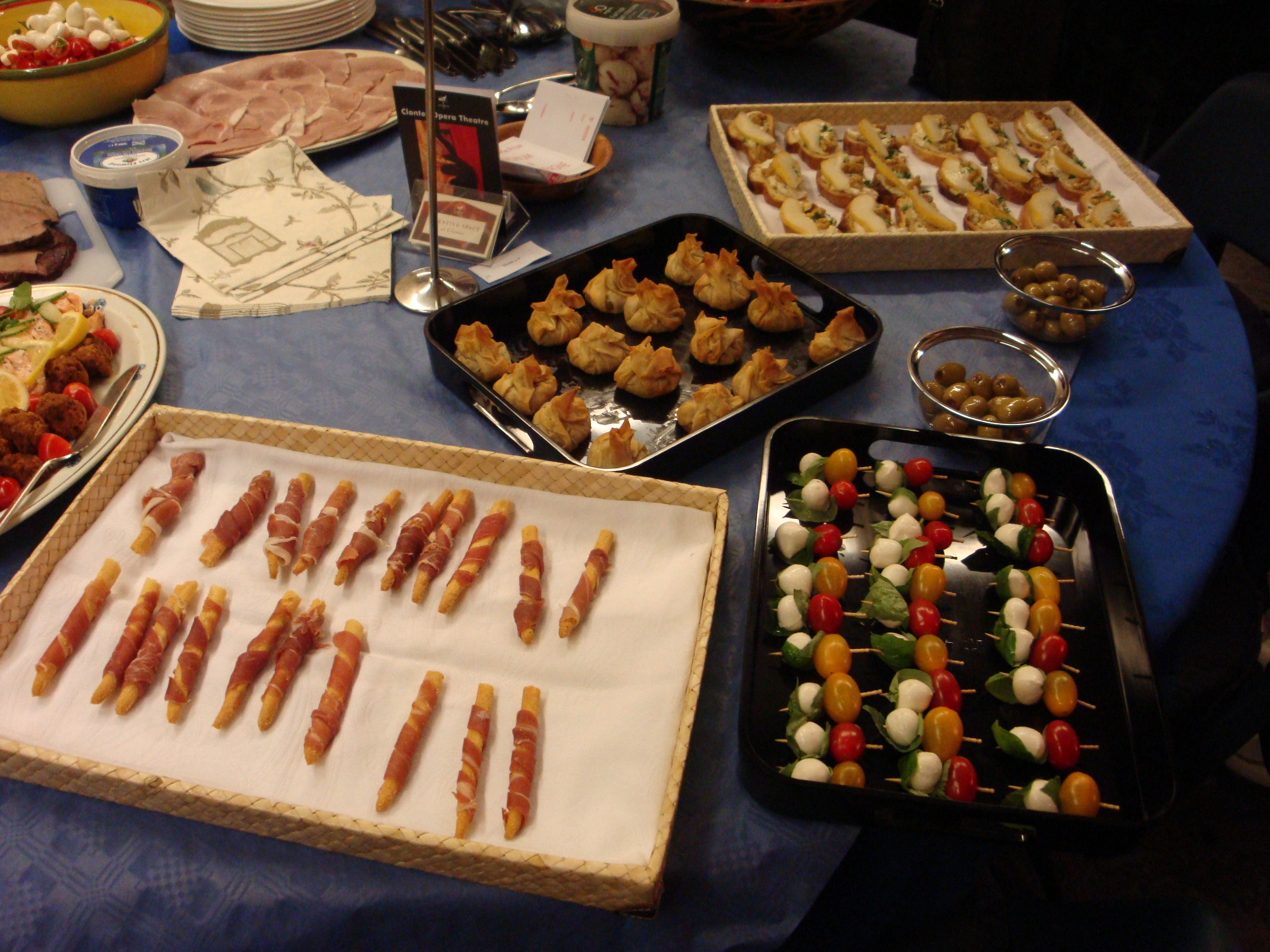 Enough of music and onto the serious business of the food. What the Clonter audience usually does is arrive at 6.30 and unpack hampers onto the tables provided in the barn seating area for drinks, canapés and first course. The performance then starts at 7.30 with a 70 minute long supper interval, just long enough for main course and pudding. We’re old hands now and know there is never time or appetite for cheese or coffee so we cut the stress and don’t bother with these now.