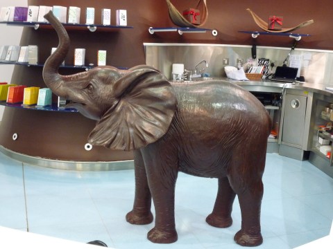 • Hi Siddarth glad you found my blog. I took the photo of the elephant at the Artisan du Chocolat shop in Manchester. I believe the chocolate is spray-painted onto a polystyrene model but you would need to contact Artisan du Chocolat to find out precise details.