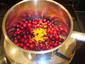 Put the sugar and port into a medium non-reactive (stainless steel or enamelled cast iron) saucepan. Mix well and bring to the boil over a gentle heat, stirring from time to time until the sugar is dissolved. Add the cranberries and orange zest and simmer until the skins of the cranberries have burst. Be careful not to overcook at this stage as otherwise you’ll get a rubber set.