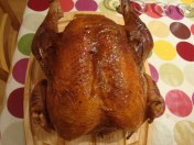 Since I discovered the slightly odd method suggested in “Leith’s Cookery Bible” of draping over the stuffed bird before it goes into the oven a folded piece of muslin soaked in an unfeasible quantity of melted butter, I’ve never looked back. Doing this and investing in a decent meat thermometer, I really don’t think you can go wrong.