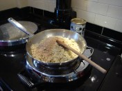 Family Christmases when I was growing up always involved a turkey with two different stuffings – sage and onion and chestnut and sausagemeat. When we have turkey now, that’s how it still has to be. Preparing the stuffings on Christmas eve was a family affair (although when I say family I mean the women in the family…) Tiny Auntie Em would always boil and chop the onions for the sage and onion stuffing but my mother would take charge of the chestnut and sausagemeat one. My mother was a fantastic but instinctive cook so never wrote her recipes down. I learned by watching and tasting. I have made the sage and onion stuffing recipe my own over time preferring now to fry rather than boil the onions and adding a handful of