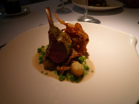 I opted for the rabbit turnover, Bob and Kath for the seabass. After drinks in the bar served with the lightest-ever pea mousse with bread crisps as a nibble, we were shown to our table.