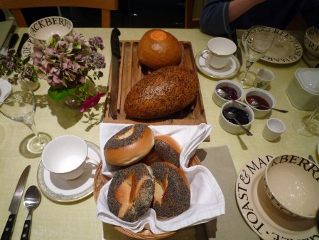 And finally, after about 6 hours spread over 2 days of shopping, chopping, pounding and boiling, we sat down to breakfast:
