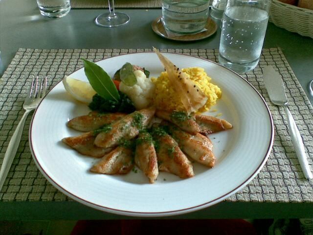 Although the place felt rather precious, food and service were top class. I opted for the good value Menu du Jour featuring more lake fish, this time the féra (as far as I know unknown in the UK, Latin name Coregonus fera). This is a larger fish than the perch with firm white delicate tasting fillets, just right with the braised leeks, steamed potatoes and beurre blank type sauce with which it was served.